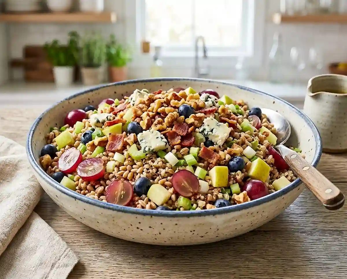 The satisfying chew of perfectly cooked wheatberries mixed with bursts of sweet blueberries and grapes completely changed how I think about grain salads. This ancient grain salad brings together the best of hearty and fresh—nutty whole grains, crisp apples, creamy cheese, and a honey-thyme dressing that ties everything together. Honestly, it’s the kind of dish that makes healthy eating feel indulgent rather than restrictive.