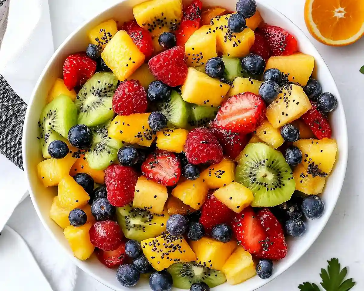 Kid-Friendly Version: Well, if you’ve got picky eaters, stick with familiar fruits like strawberries, blueberries, and oranges, skipping the kiwi and pomegranate. Let kids drizzle their own dressing so they control the sweetness level. Sometimes involving them in the process makes them more excited to try new Fresh Fruit Dishes.