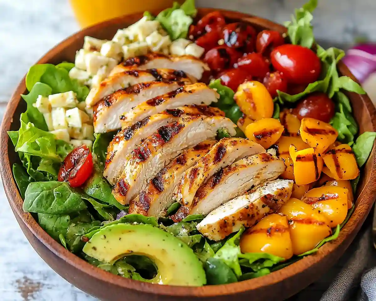 Skip the corn entirely and add extra avocado, cucumbers, and radishes for crunch. This keeps the grilled chicken salad & sweet onion dressing keto-friendly while still delivering tons of flavor and satisfaction.