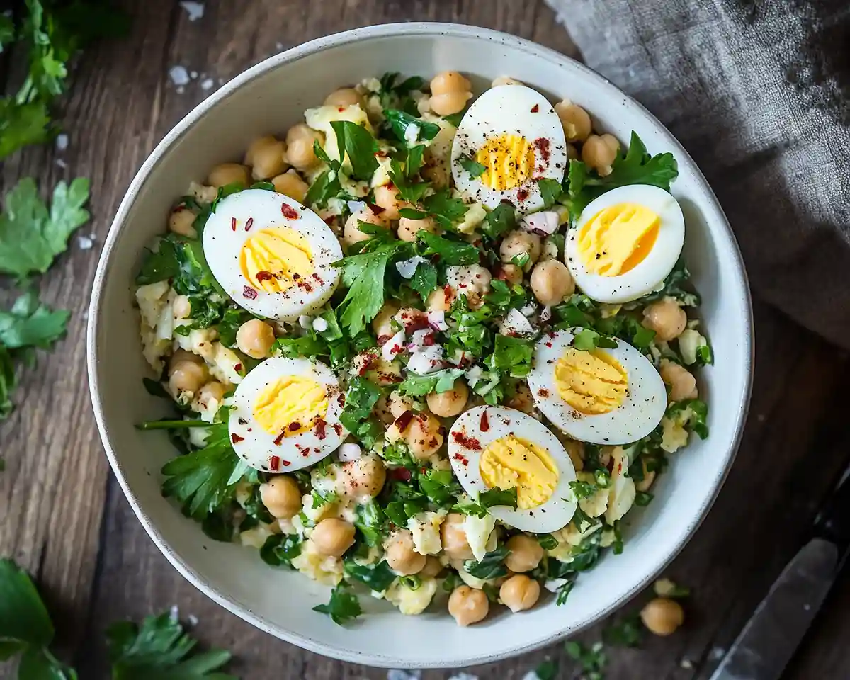 Discover this vibrant Mediterranean chickpea egg salad loaded with fresh herbs, crisp veggies, and a zesty lemon dressing. Perfect for busy families seeking simple salads recipes that feel restaurant-quality.