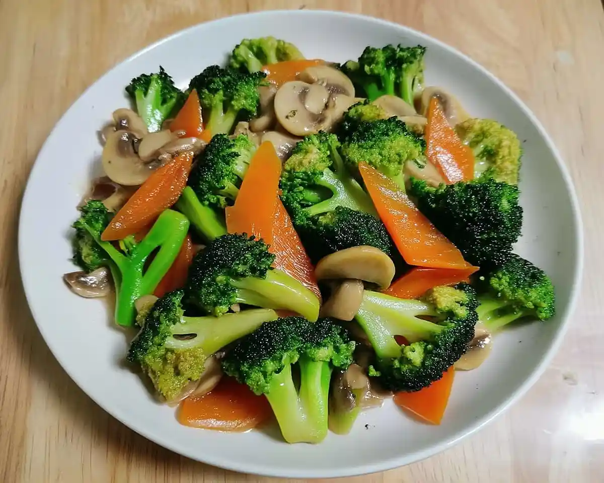 A vibrant, umami-rich stir-fry featuring tender mushroom slices, bright broccoli florets, and crisp carrots coated in a silky oyster sauce glaze. This healthy, restaurant-quality dish is ready in just 20 minutes and perfect for serving over rice or noodles.