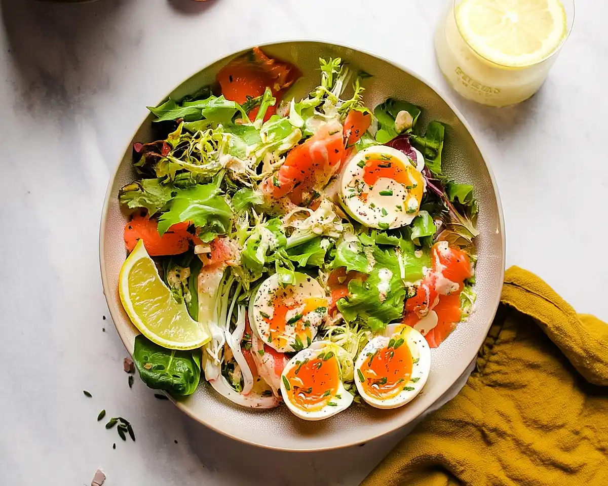 This Smoked Salmon Salad in Creamy Caper Chive Dressing brings luxurious flavor to weeknight dinners with jammy eggs, fresh greens, and tangy vinaigrette.