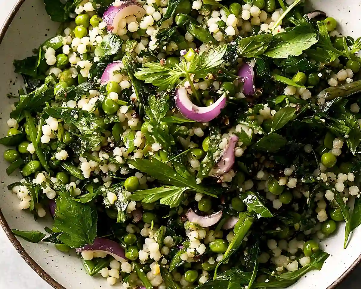 Well, here it is. This Pea And Pearl Couscous Salad is one of those dishes that makes you feel like a kitchen superstar without any of the stress. The textures are perfectly varied—tender couscous, crunchy pistachios, peppery arugula—and the bright lemon dressing keeps every bite feeling alive and fresh.