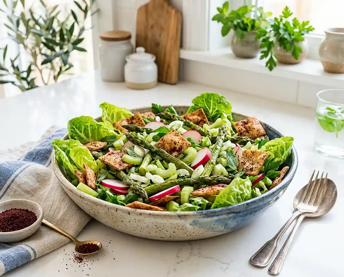 The first time I made a spring fattoush salad with sumac pita chips, I was completely captivated by that distinctive tangy-sour flavor of sumac mingling with fresh herbs and crispy bread. This Lebanese fattoush salad celebrates spring with tender roasted asparagus, peppery radishes, and those irresistible homemade pita chips that shatter with each bite. Honestly, once you taste properly seasoned sumac pita chips, store-bought croutons will never compare.
