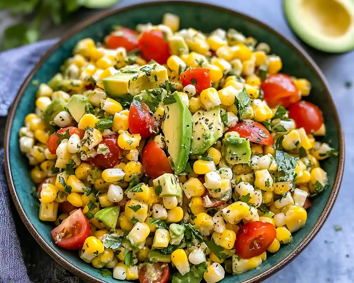 Well, here’s the truth: the best salads don’t need to be complicated. This one celebrates fresh summer produce at its peak—crisp corn kernels, juicy tomatoes, and buttery avocado all dancing together in a tangy lime dressing. It’s colorful, refreshing, and tastes like sunshine in a bowl.