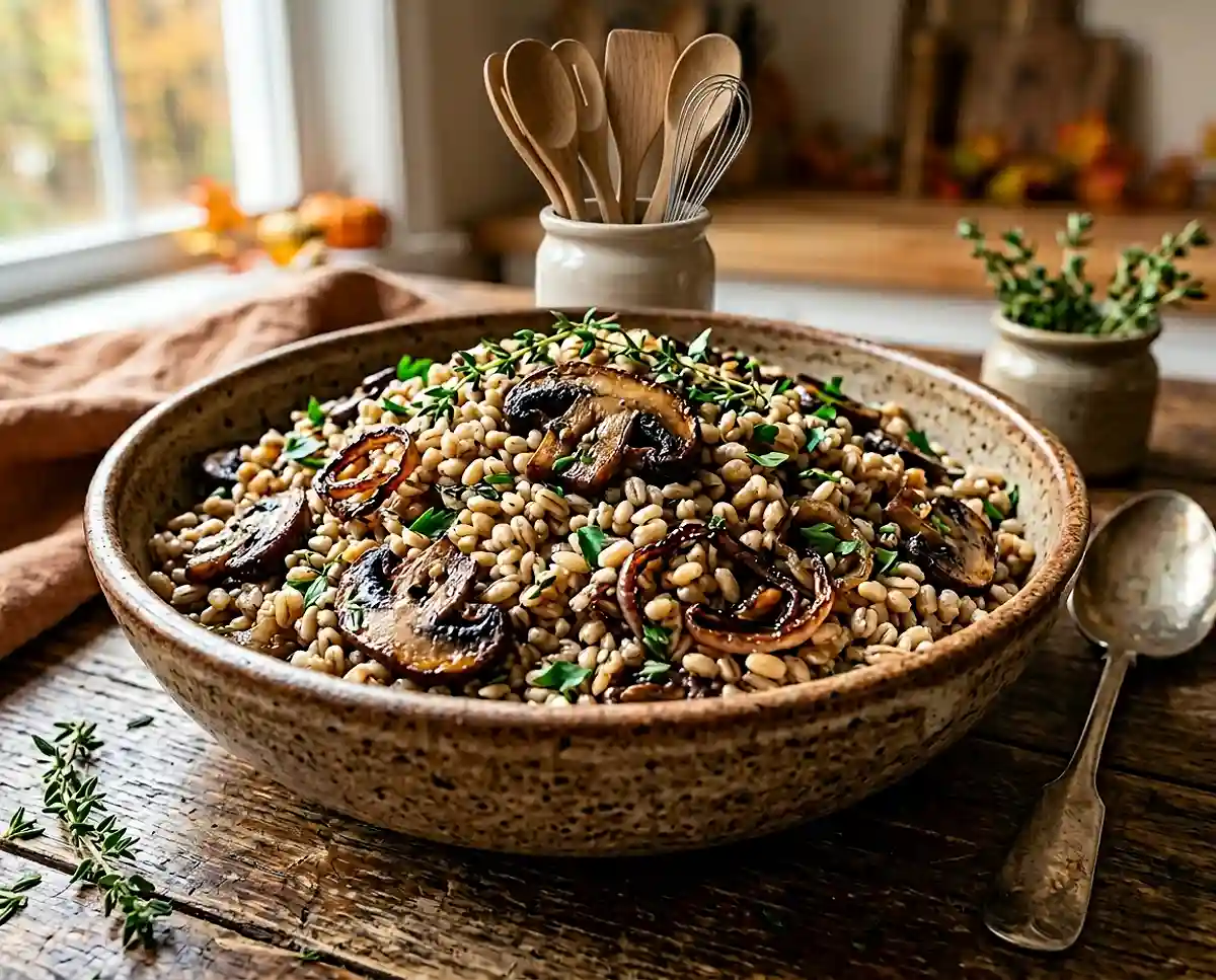 Have you ever wanted a salad that actually satisfies on cold nights? This mushroom and barley salad recipe delivers that rare combination of comfort food warmth with wholesome, plant-forward ingredients. The earthy mushrooms mingle with fresh thyme and bright parsley, while a splash of orange juice adds unexpected brightness. It’s become our Thanksgiving table staple, earning a permanent spot alongside the turkey.